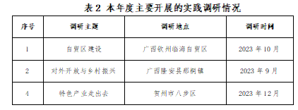 —大新县人民政府联合培养基地等平台,开展调查研究,打造MIB模拟实训室案例中心等。本年度组织学生到广西钦州临海自贸区等地开展的专题实践。(见表2)