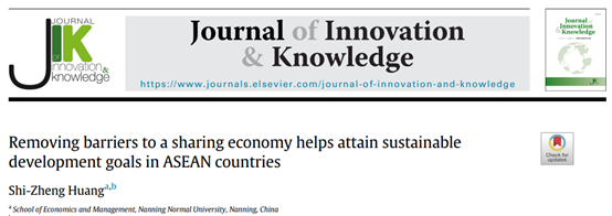 为第一单位在SSCI国际顶级期刊《Journal of Innovation & Knowledge》上发表题为“Removing barriers to a sharing economy helps attain sustainable development goals in ASEAN countries”的高水平学术论文。《Journal of Innovation & Knowledge》是管理学领域的JCR一区SSCI期刊,2022年影响因子IF:18.10、中科院一区Top期刊。此外,黄世政教授指导博士生以成人探花