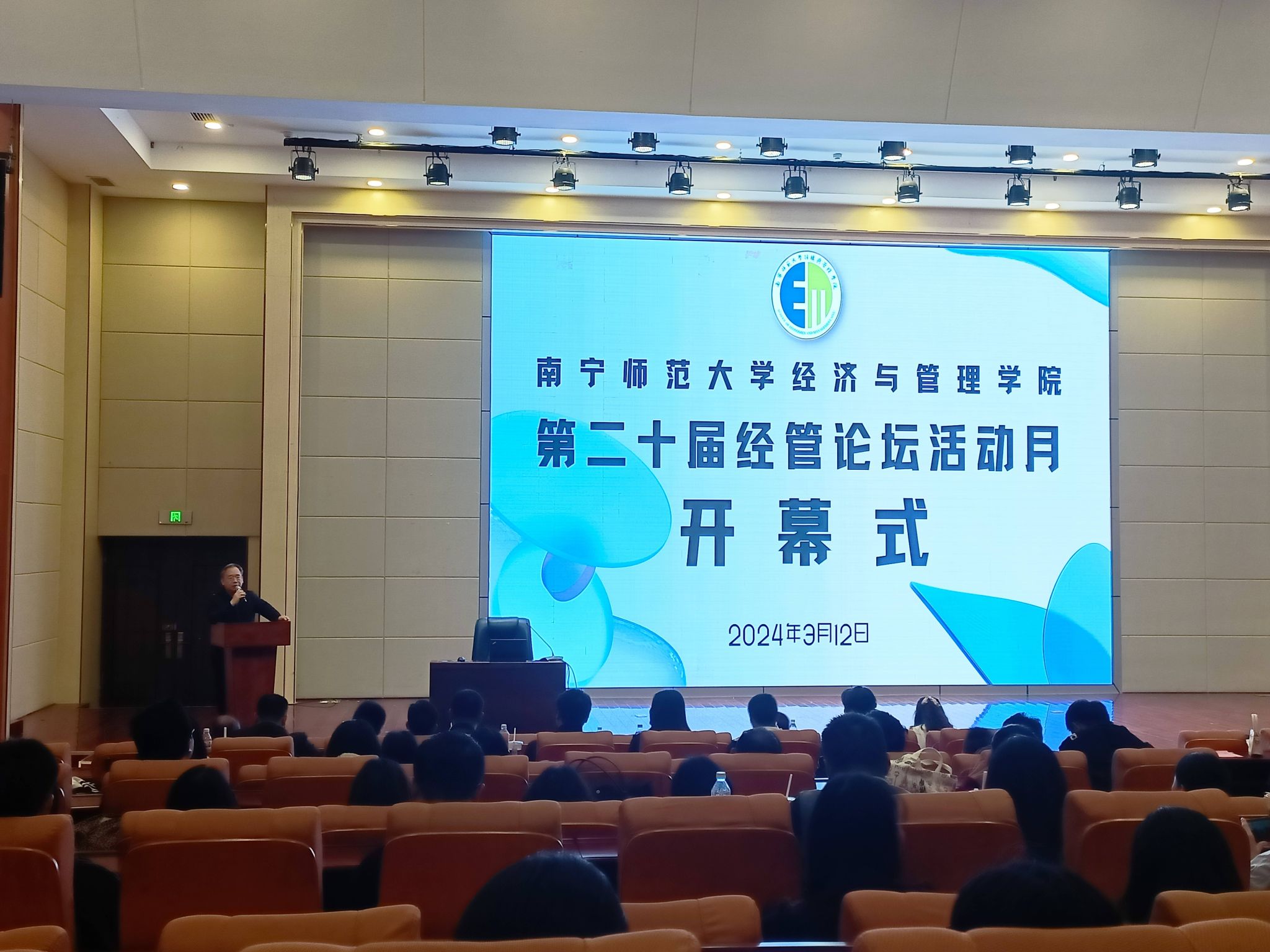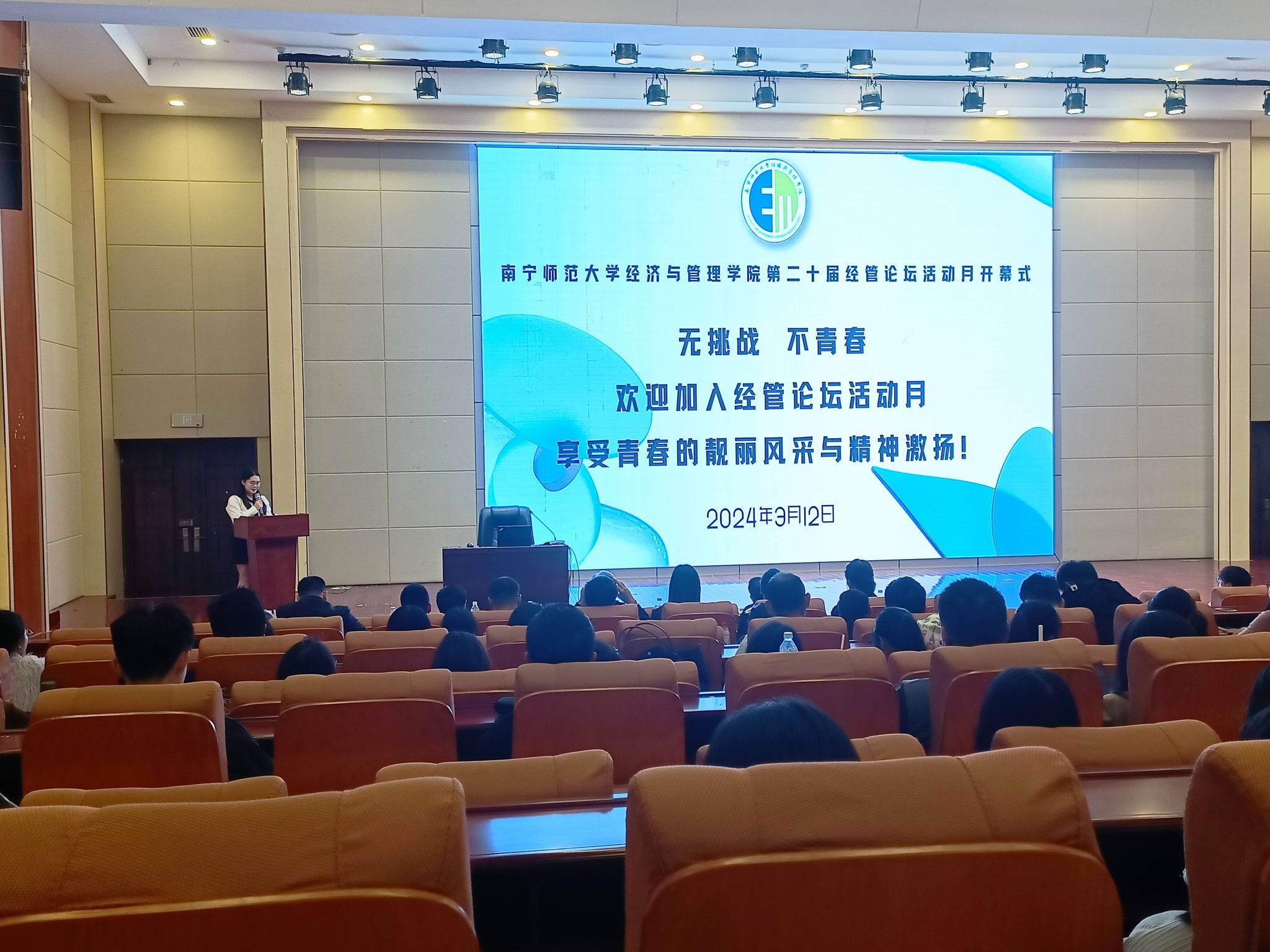 于文综楼114教室举办了第二十届经管论坛活动月开幕式,学院党政领导、教师代表、学生代表参加了活动。