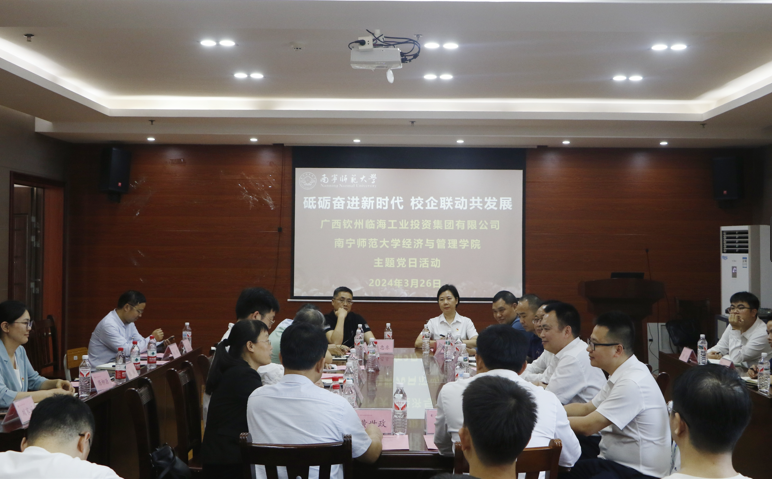 委员会在五合校区共同开展“砥砺奋进新时代 校企联动共发展”主题党日活动。广西钦州临海工业投资集团有限公司党委委员临港石化公司总经理华国红、临海供应链公司董事长兼总经理苏杰、临海贸易公司执行董事兼总经理何大武等人及成人探花