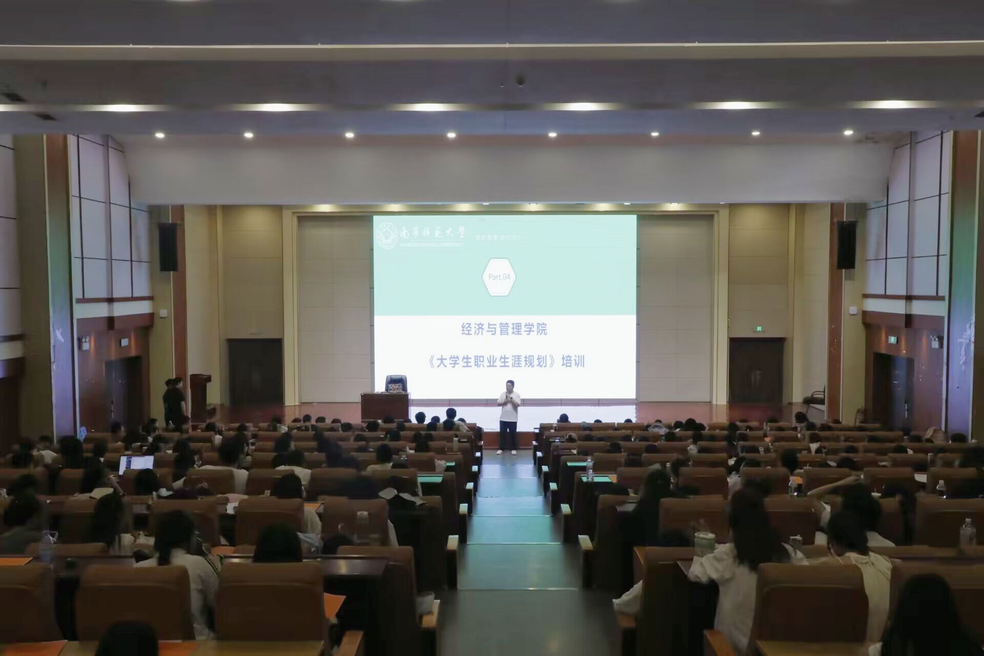 于文综楼开展2021级学生职业生涯规划讲座。本次讲座由肖钧泽讲师担任主讲人,学院党委副书记、纪委书记何一飞、部分辅导员、2021级全体学生参加了活动,学院辅导员李宏晨主持。