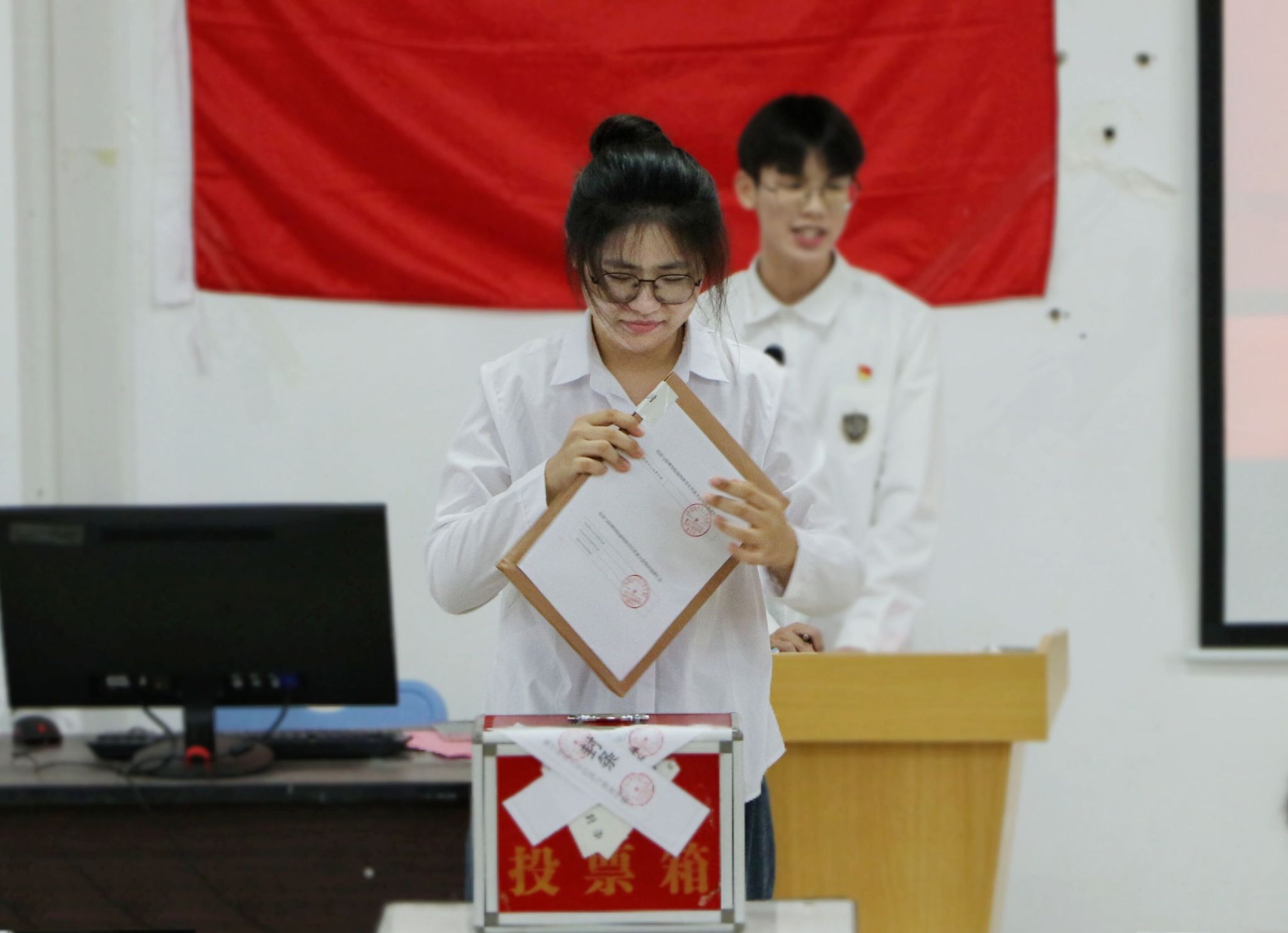 学生会工作报告》。大会进行了新一届学生会委员会的选举,通过全体代表的民主投票,最终产生了黄耀衫等29名同学为我院第四届学生会成员。新任学生会成员黄耀衫宣读大会倡议书,他表示,在未来的新一学年里,将以更加饱满热情和务实的态度积极开展各项工作,为广大学生提供更加优质的服务,为学院发展贡献力量。最后,学院学工办辅导员刘家瑶老师致闭幕词,向在座的同学们表示感谢并提出殷切期望,鼓励同学们坚守初心,始终如一,学会掌握团队管理的方法与技巧,号召同学们在岗位上成长锻炼,贡献青春力量。
