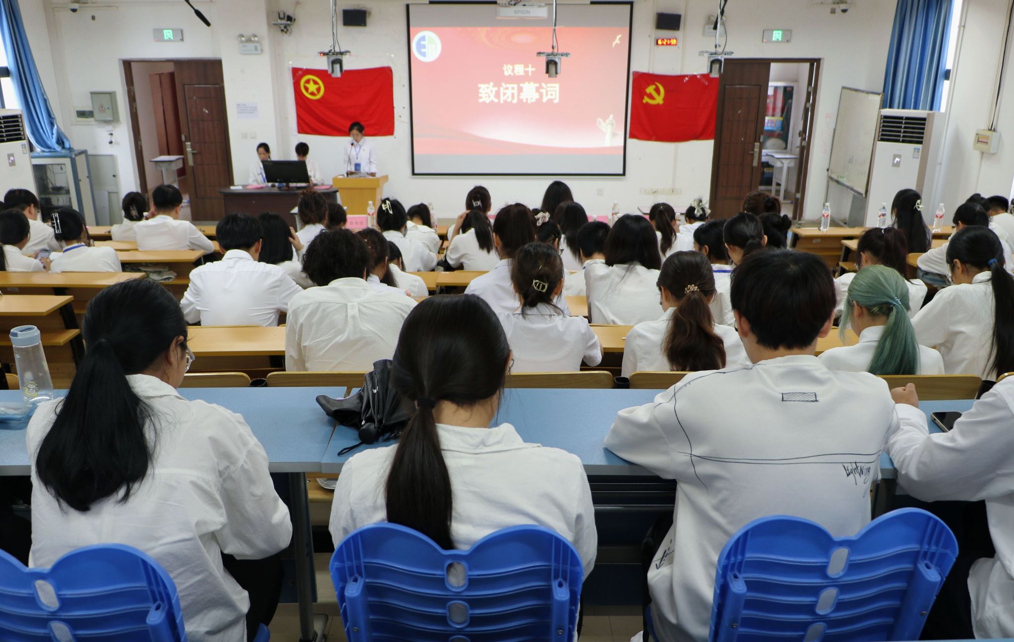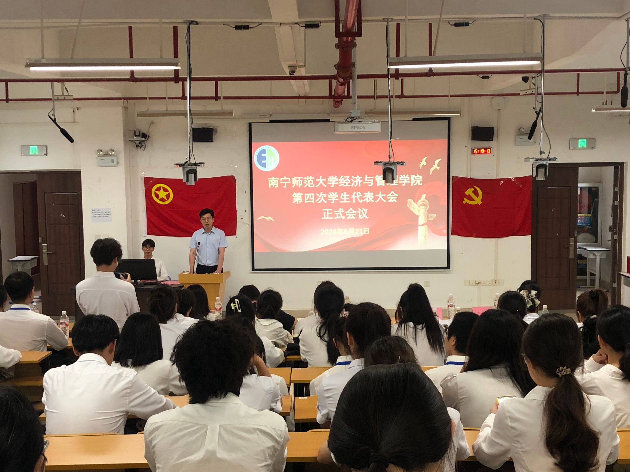 第四次学生代表大会在五合校区文理综合楼文楼顺利召开。参加本次大会有学院党委副书记何一飞、学工办辅导员刘家瑶、李宏晨、孙国时、勒韦倩以及学院各班代表,大会由学院执行主席陆柳政主持。