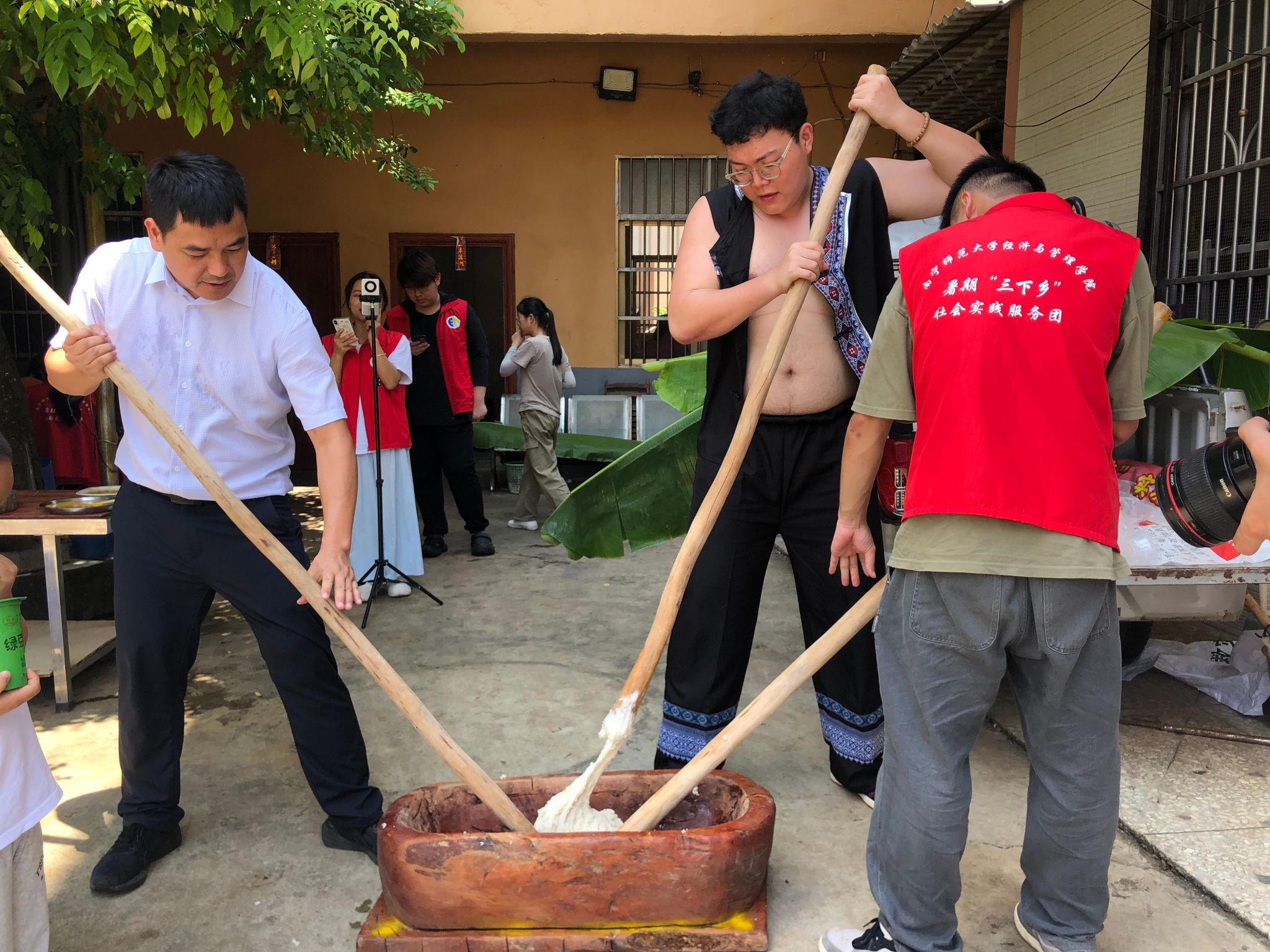 “桂韵歌团”民族团结实践团赴边境县广西崇左市宁明县城中镇珠连村开展以“‘农文旅商’融合发展,青春有我助力边疆”为主题的暑期“三下乡”社会实践活动。本次实践活动主要围绕直播助农、理论宣讲、体验民俗和入户走访调研四个方面进行。此次“三下乡”实践团队由刘家瑶老师带队,直播组、宣讲组、调研组、宣传组和后勤组共19人组成。