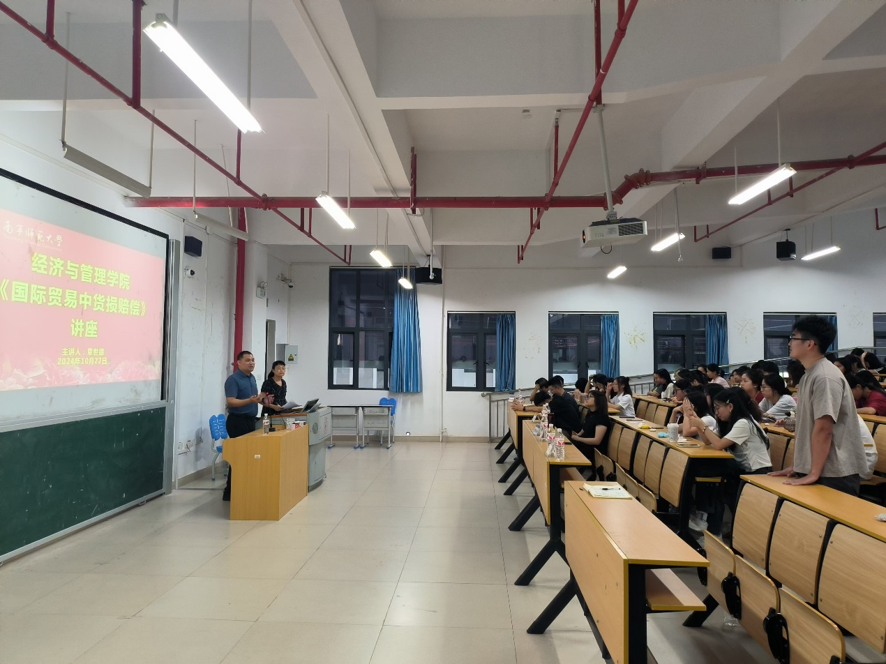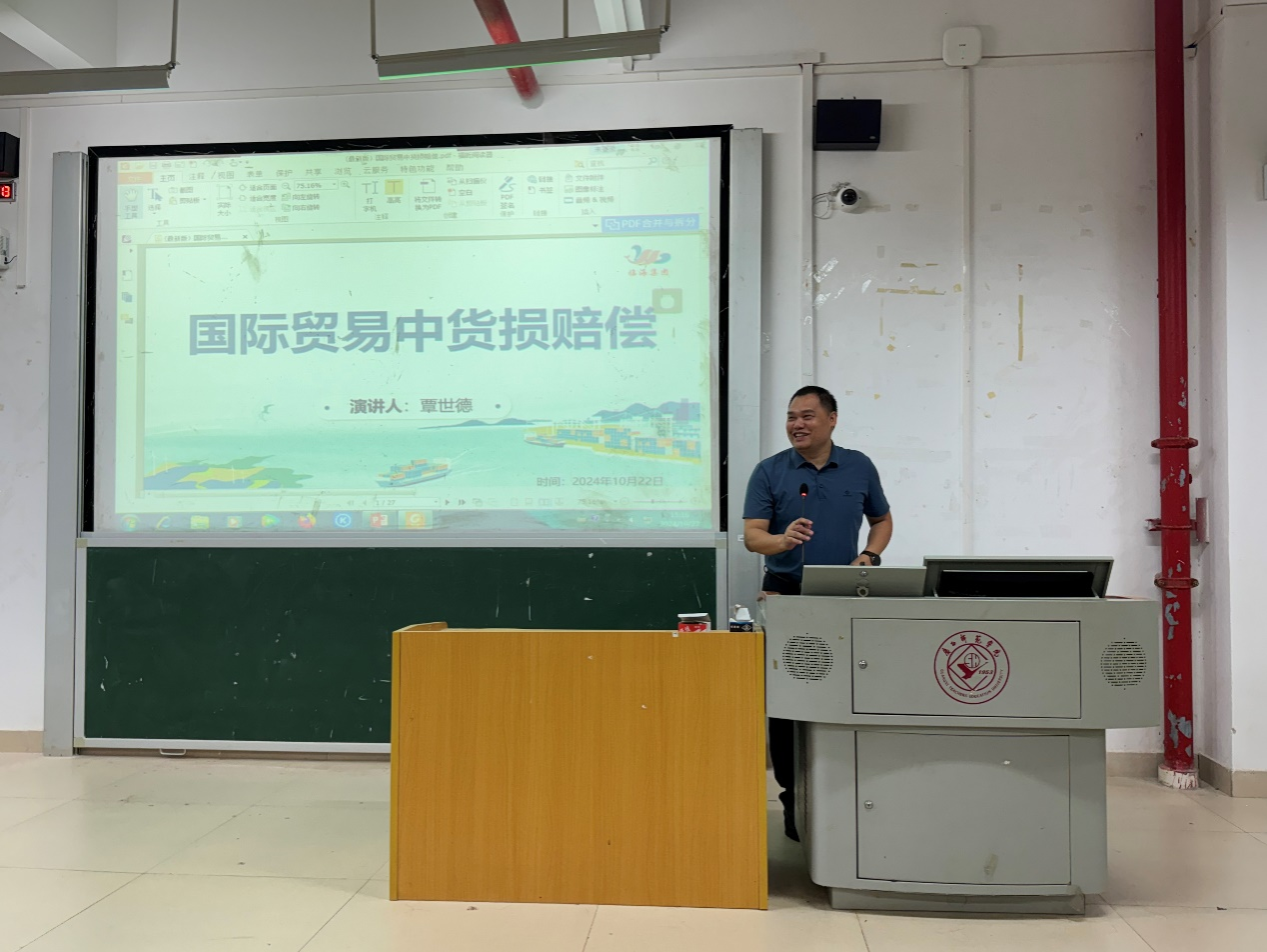 在五合校区文综301顺利举办了“国际贸易中的货损赔偿”专题讲座。本次讲座旨在帮助学生深入了解国际贸易中货损赔偿的原因和索赔流程,提升其在全球经济环境下的风险管理能力。讲座由钦州开投泓泰供应链公司总经理覃世德主讲,由经管院副院长何玲玲主持。