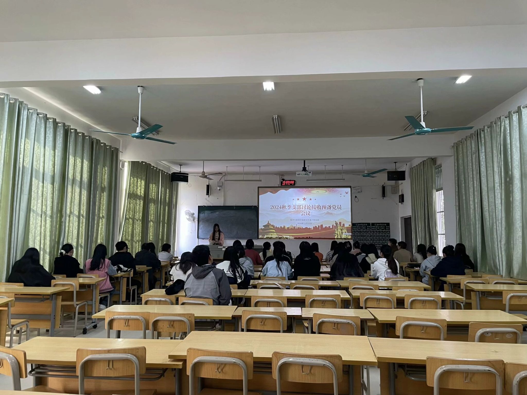 本科生第六党支部在五综109教室召开党员大会讨论接收2024年秋季批次预备党员。会议由支部书记陈思娴主持,本科生第六党支部全体党员参加大会,会议主要讨论发展对象邓玉芳等15位同志接收为预备党员问题。