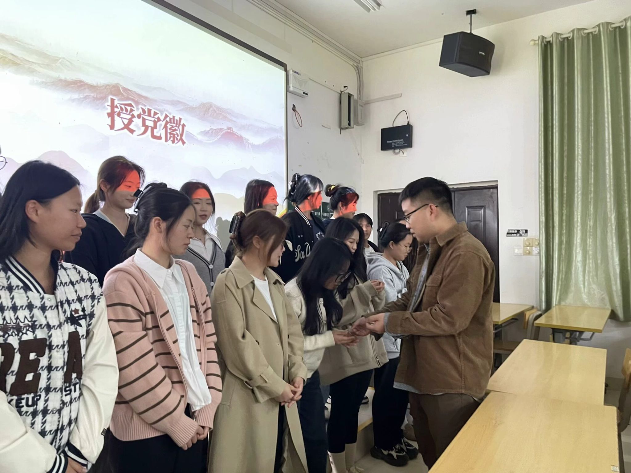 会议开始,支部书记陈思娴介绍会议的流程及具体要求。全体同志起立奏唱国歌,然后按照接收预备党员大会的流程,邓玉芳等15位发展对象依次汇报自身对党的认识、入党动机及有关情况,入党介绍人介绍发展对象有关情况,并对其能否入党表明意见,党支部书记陈思娴同志代表支委会报告对发展对象的政治审查情况,与会党员对发展对象的入党问题进行讨论、发表意见,发展对象本人作表态发言。随后,经正式党员进行无记名投票表决,邓玉芳等15位同志通过投票决议,已符合接收预备党员的标准,同意转为中共预备党员。最后,由学工办辅导员梁万林老师对邓玉芳等15位同志授予党徽和合影留念,同时提出寄语,希望其在学习和生活中保持积极向上的心态,进一步加强对党的理论的学习,不忘初心、牢记使命。同时对与会党员也提出殷切希望,希望党支部全体党员严于律己,乐于助人,发挥党员先锋模范作用。