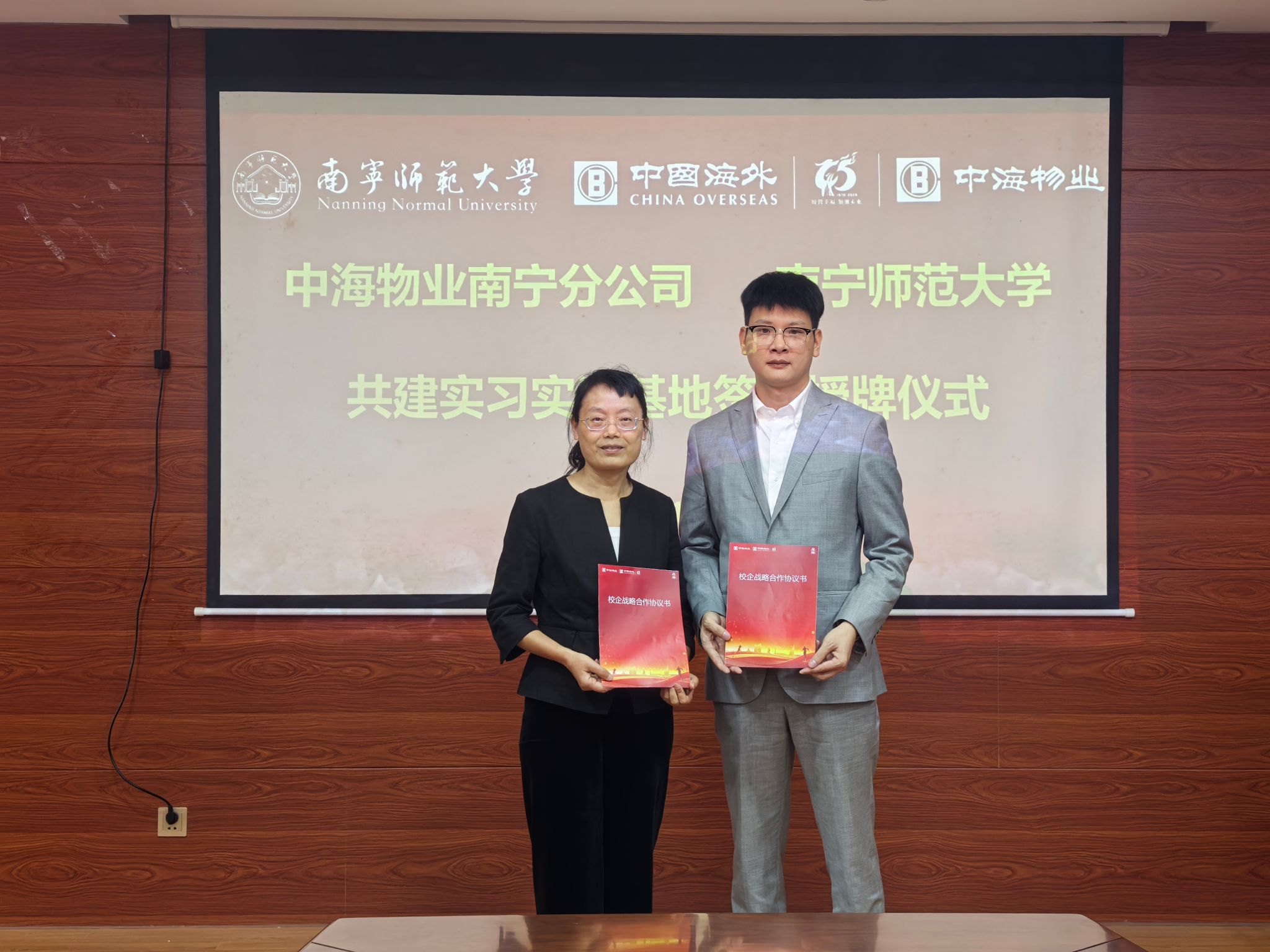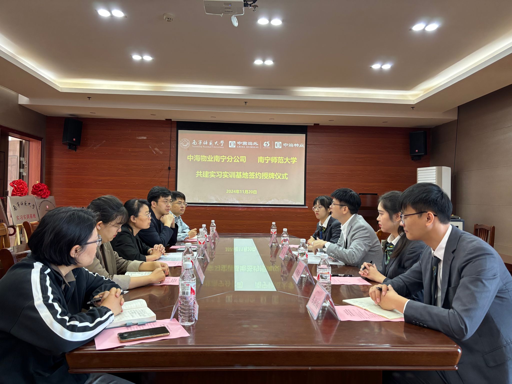 与中海物业南宁分公司在五合校区理综515举办校企战略合作签约授牌仪式。中海物业南宁分公司人事行政部经理梁浩一行,成人探花