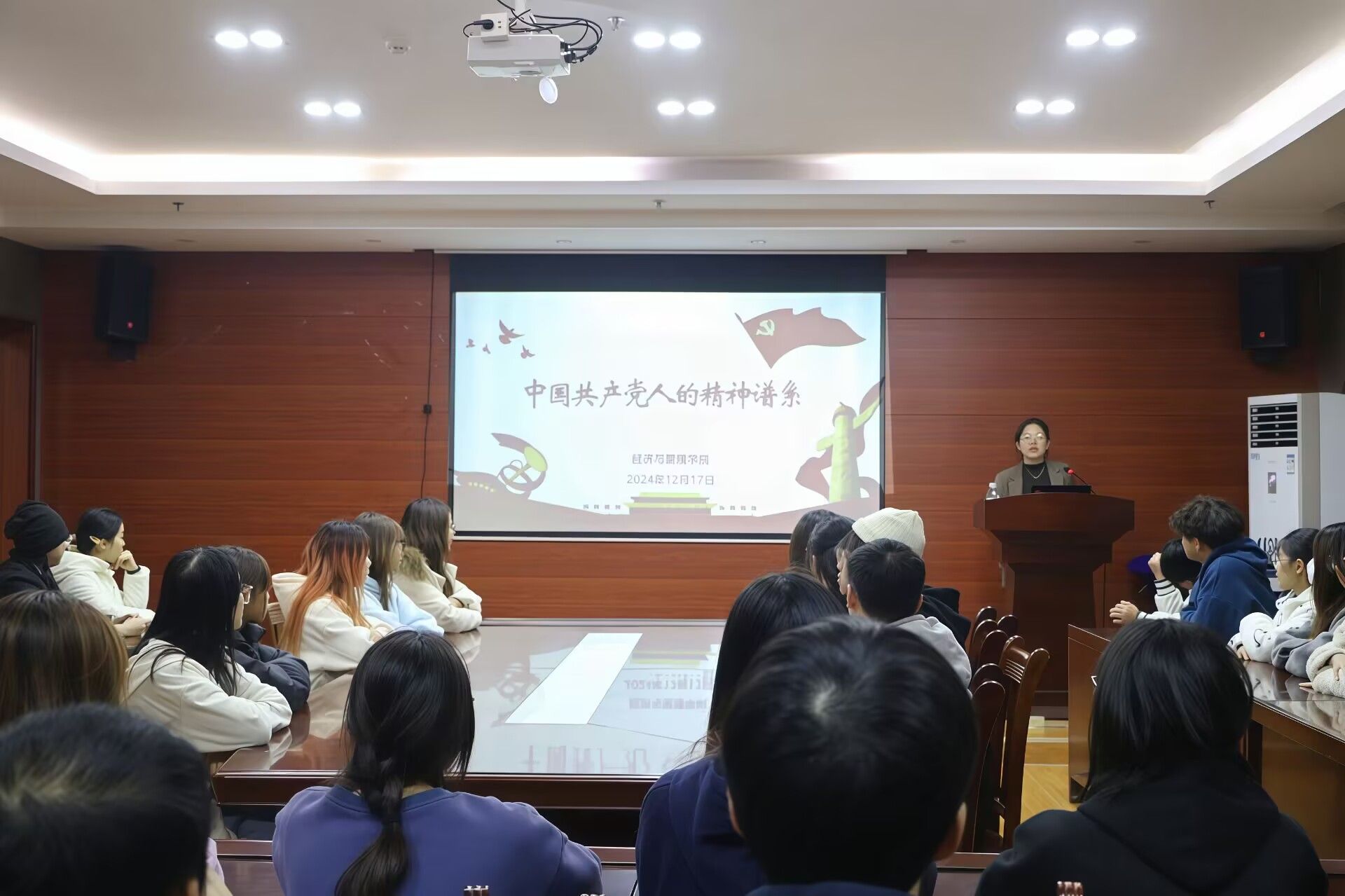 在文理综合楼理楼开展“中国共产党人精神谱系”宣讲活动。学院本科生第二党支部书记刘家瑶担任主讲人,2023级国际经济与贸易2班团支部全体学生参加。