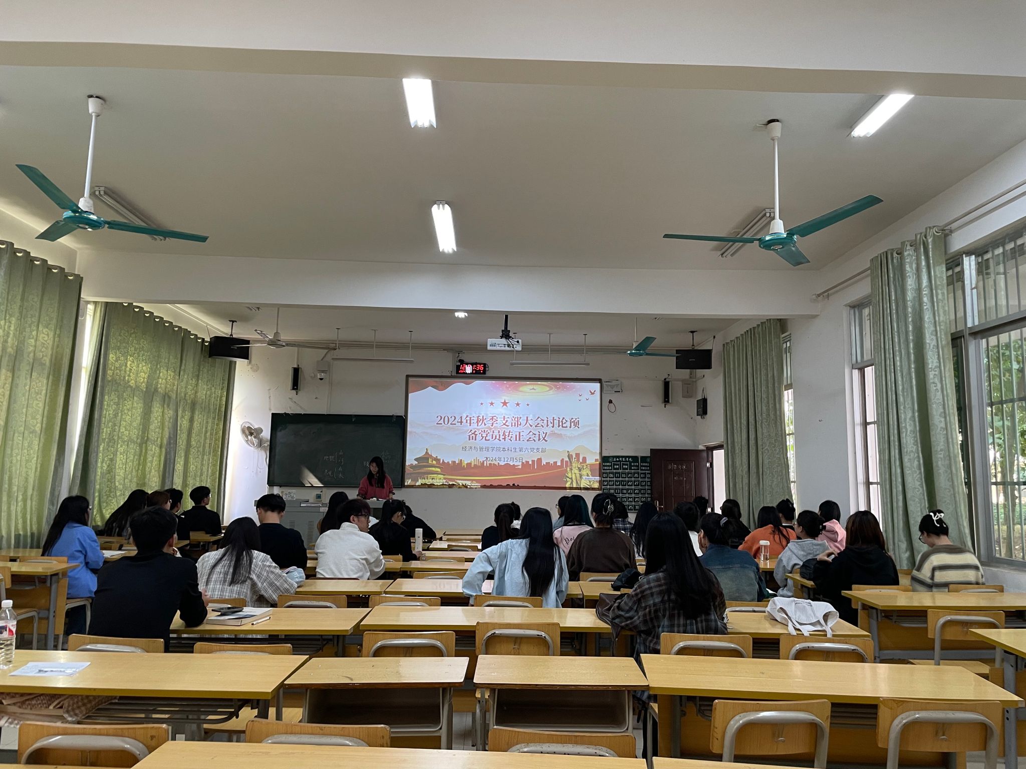 本科生第六党支部在五综109教室召开秋季支部大会讨论预备党员转正会议。会议由支部副书记周琴主持,本科生第六党支部全体党员参加大会,会议主要讨论预备党员唐鑫兰等两位同志转为正式党员问题。