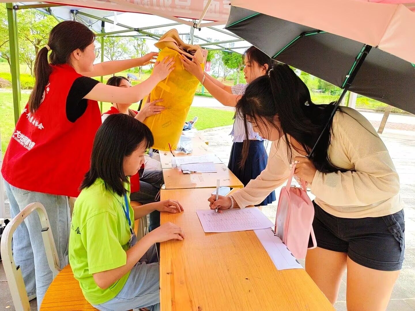 青年志愿者协会于6月15日在食堂正门摆摊处开展以“旧物焕新,环保有你”为主题的旧物回收活动,鼓励同学们通过具体行动支持环保事业,助力资源的再次利用。