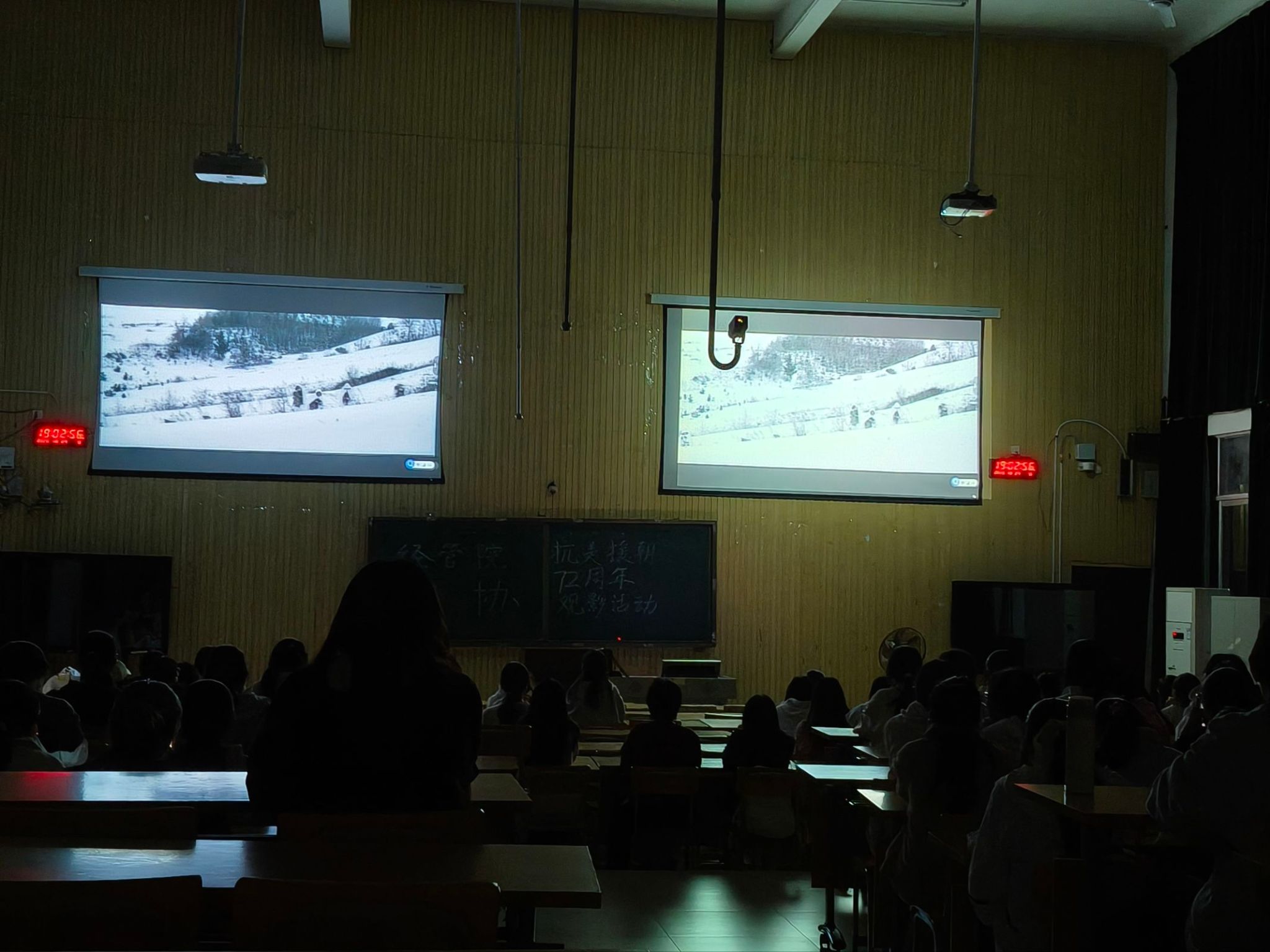 在活动筹备阶段,青协工作人员分工明确、协作高效,圆满完成了场地布置、观影引导等前期工作。在观影环节,同学们一同观看了抗美援朝题材影片《狙击手》。该片以1952年冬抗美援朝第五次战役结束后的阵地阶段为背景,生动地再现了志愿军狙击手的英勇群像。观影过程中,工作人员全程维护现场秩序,及时响应观众需求,营造出沉浸式的观影氛围。现场的安静与专注,让大家仿佛穿越回战火纷飞的年代,真切地体悟到革命先辈“保家卫国、视死如归”的坚定信念。活动结束后,工作人员有序引导观众离场,并同步开展场地整理与服务总结工作。