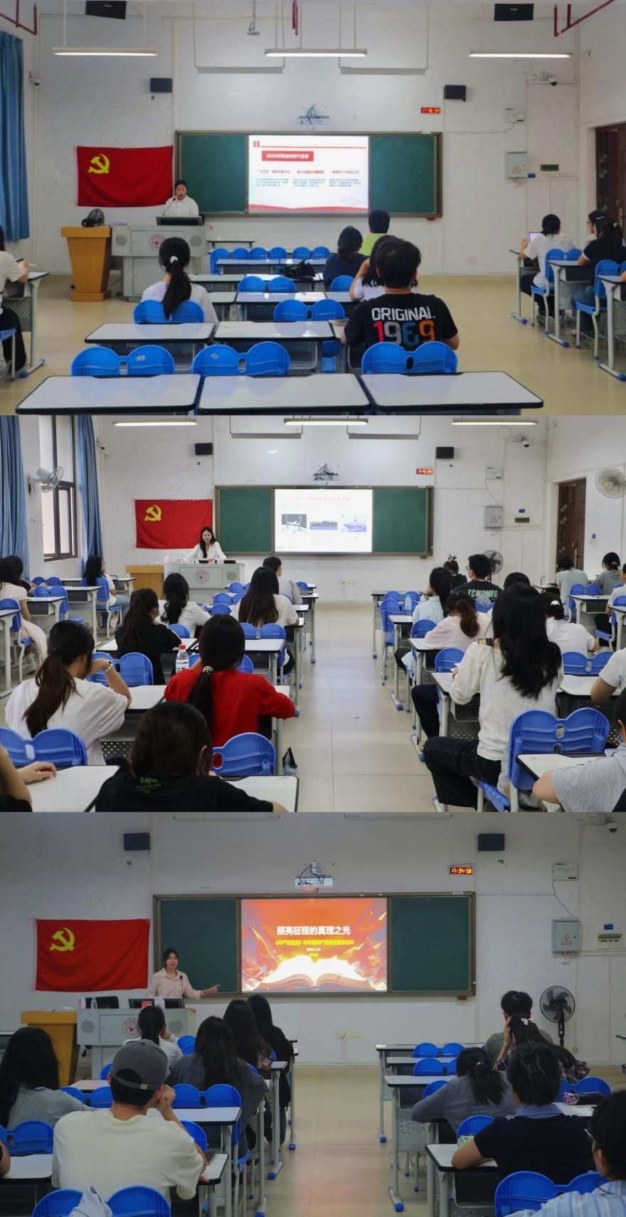 第69期入党积极分子培训在五合校区文理综合楼顺利开展。学院团委书记罗茜、辅导员郭芯、赖甜甜担任主讲人,全体入党积极分子参加培训。