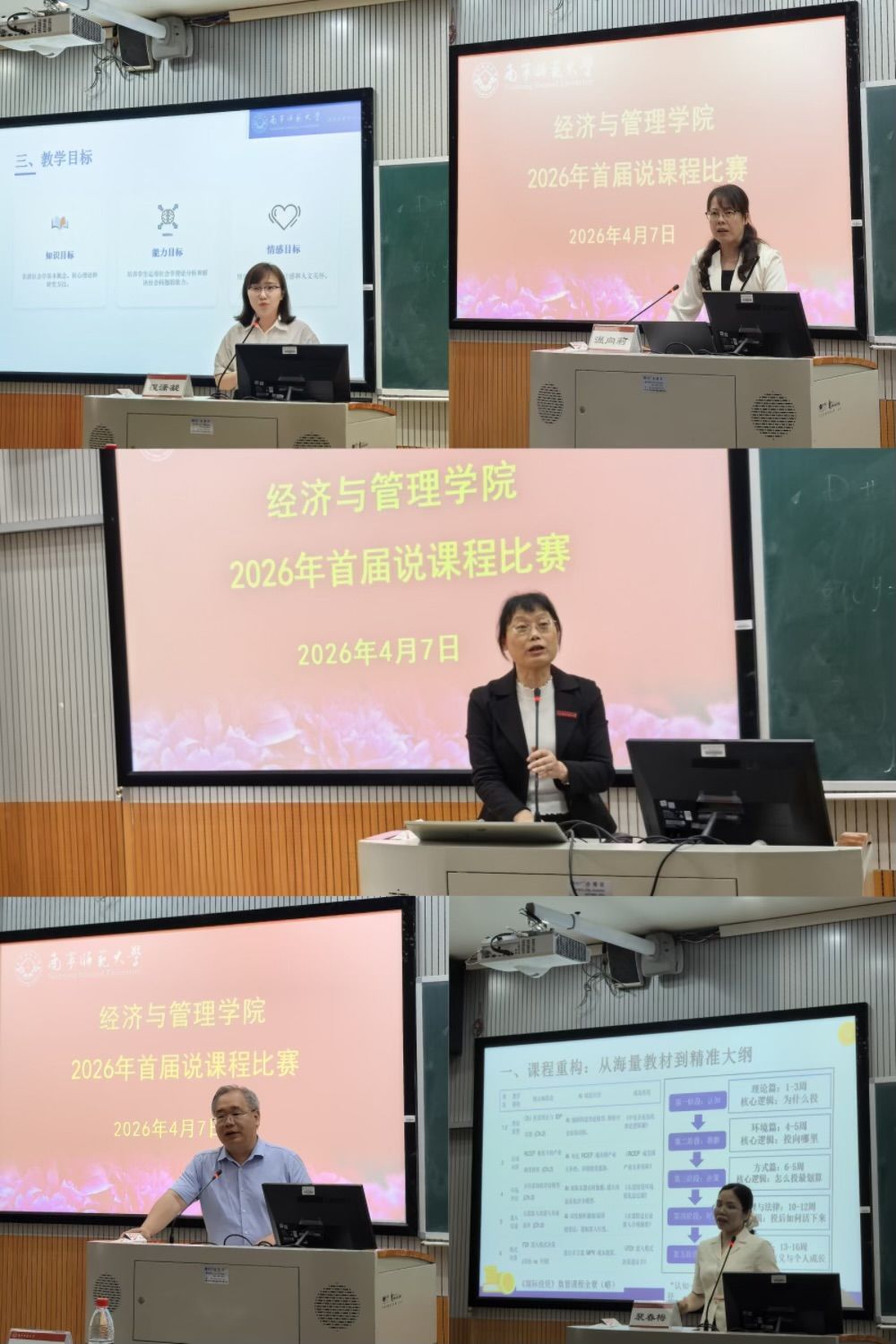 比赛现场氛围热烈且严谨,五位参赛教师依次登台,围绕各自主讲课程,从课程理念、设计思路、教学实施、特色创新等方面展开精彩展示。肖琳文老师以《数字内容包装与营销》为题,聚焦数字内容创作领域,分享课程“养生之路”的教学构建,紧扣行业发展趋势,打造贴合市场需求的教学内容;程潇凝老师对《社会学概论》课程进行系统阐述,立足学科基础,明晰课程育人逻辑与教学实施路径;裴春梅老师围绕《国际投资》课程,重点展示数智化课程改革成果,将数字化技术与专业教学深度融合,创新教学模式;叶颖老师以“虚实融通,数智赋能,德能并修”为核心,详解《国际贸易模拟操作》课程的实践教学体系,兼顾专业技能培养与德育渗透;闭闲老师针对《管理沟通》课程,结合学科特点与学生能力培养需求,梳理课程教学重点与实施策略,突出实用性与互动性。