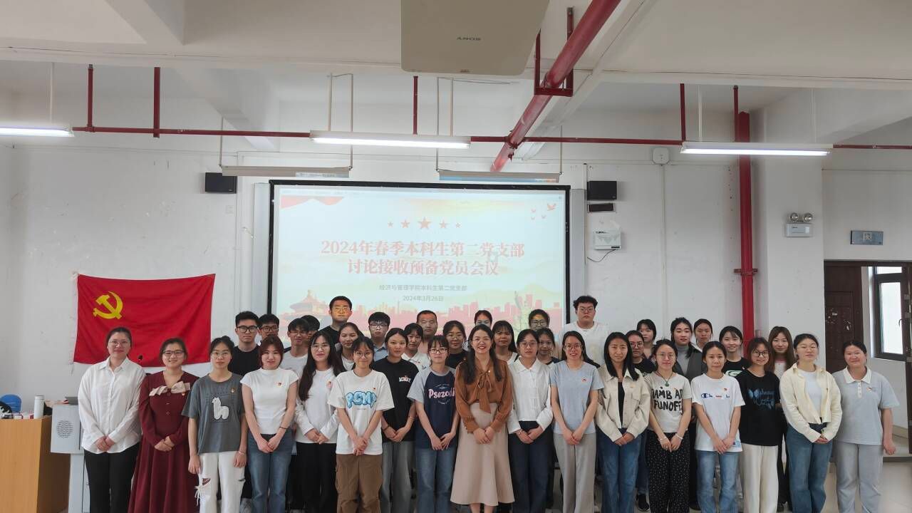 本科生第二党支部在文理综合楼文楼召开2024年春季讨论接收预备党员会议。本次会议由保密委员陆柳政同志主持,本科生第二党支部支部书记刘家瑶和党员共33人参加会议。