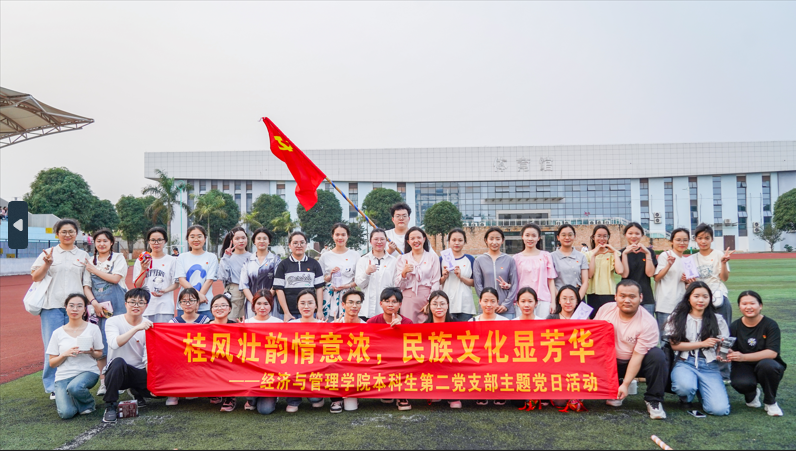 本科生第二党支部在五合校区运动场开展“壮风壮韵情意浓 民族文化显芳华”主题党日活动。