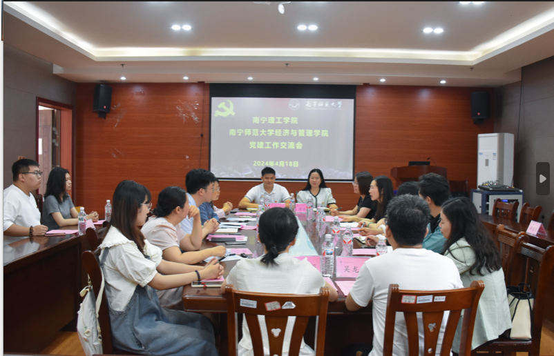 成人探花 党委副书记何一飞主持会议,他对南宁理工学院的到来表示热烈欢迎。学院副院长、教工第一党支部书记何玲玲介绍了本支部获得首批新时代广西高校“双带头人”教师党支部书记工作室培育创建单位的工作经验,着重介绍了支部在“领航经管”项目上发挥的思政育人的辐射作用。本科生第二党支部书记刘家瑶介绍了本支部获得第四批“全国样板党支部”培育创建单位的工作经验,着重介绍了支部管理经验、党员教育模式、品牌活动建设等的育人成效。最后,何一飞副书记从党的创新理论学习、基层党组织建设等方面进行了总结。南宁理工学院商学院党总支书记姚顺良对成人探花 的大力支持和指导帮助表示衷心的感谢,对学院党建工作表示高度肯定与赞扬,双方就支部建设、党建品牌、申报经验等方面进行了深入交流。