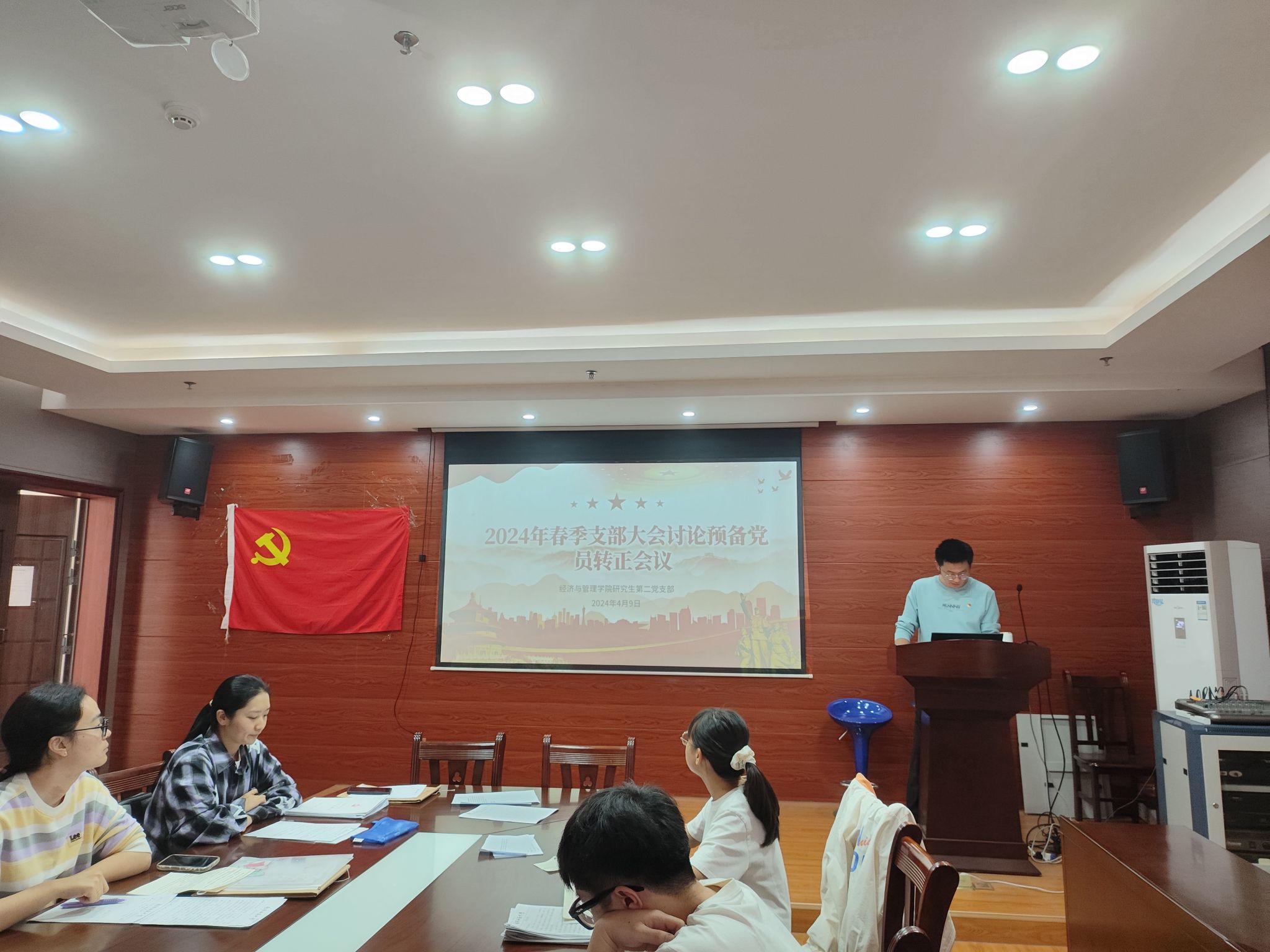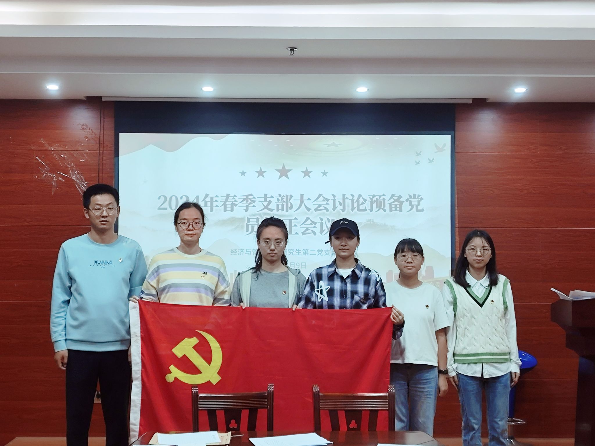 研究生第二党支部在五合校区理楼召开预备党员转正大会。会议由副书记高鑫同志主持,支部全体党员参加会议。