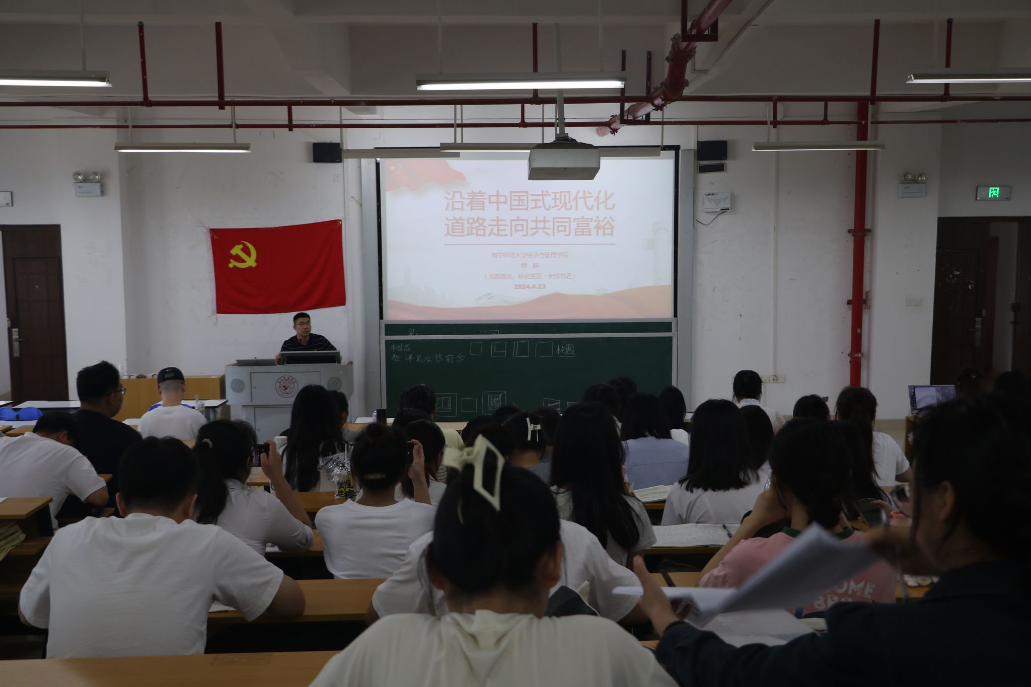 第二讲由韦海鸣院长紧密围绕“坚持高质量发展作为新时代的硬道理”的主题,重点从“发展是硬道理”的提出、高质量发展的提出、“新时代硬道理”的论断、区域的高质量发展、当代大学生的高质量发展五个方面进行深入讲解,使预备党员明白坚持发展是硬道理的战略思想不能动摇,紧跟新时代中国高质量发展的脚步,贯彻落实习近平总书记对广西“五个更大”重要的要求,把人生理想融入国家和民族的事业中,将个人奋斗融入新时代高发展格局。