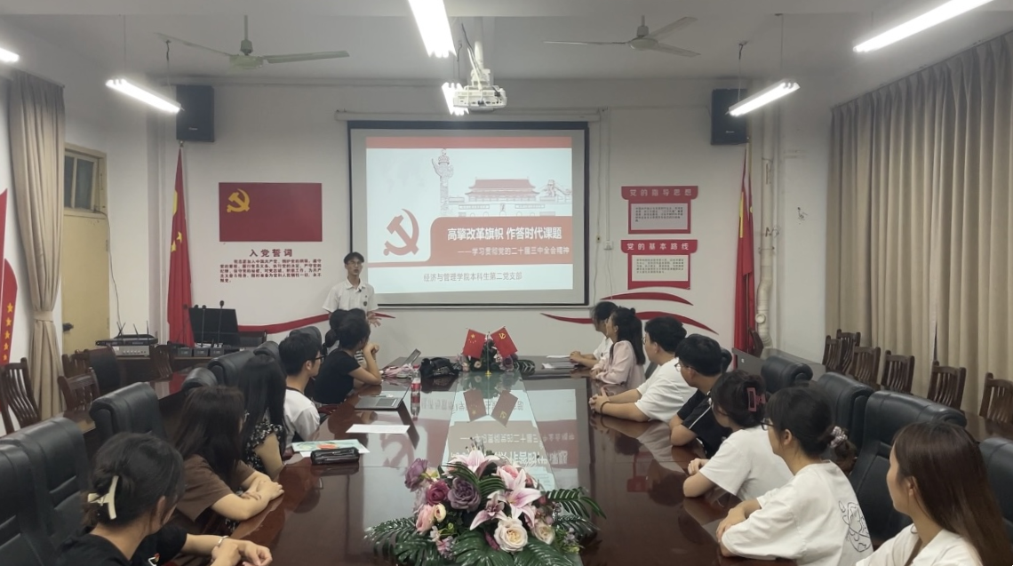 本科生第二党支部在明秀校区开展“高擎改革旗帜 作答时代课题”主题党课,此次党课由支部副书记陆柳政同志主讲,支部全体在校党员参加听课。