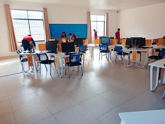 足球场上,同学们积极地投入到清扫活动中,对于细微的垃圾,同学们勤于用手去捡起,认真细致地对足球场及周边花圃进行清扫。创客社区实验室内,同学们积极主动、乐此不疲地进行擦桌、擦窗、扫地、拖地等清洁工作。足球场上、实验室里,都留下志愿者们团结互助、认真细致的身影。经过打扫后的足球场草地和实验室,面貌焕然一新。活动结束后,志愿者们一起合影留念。