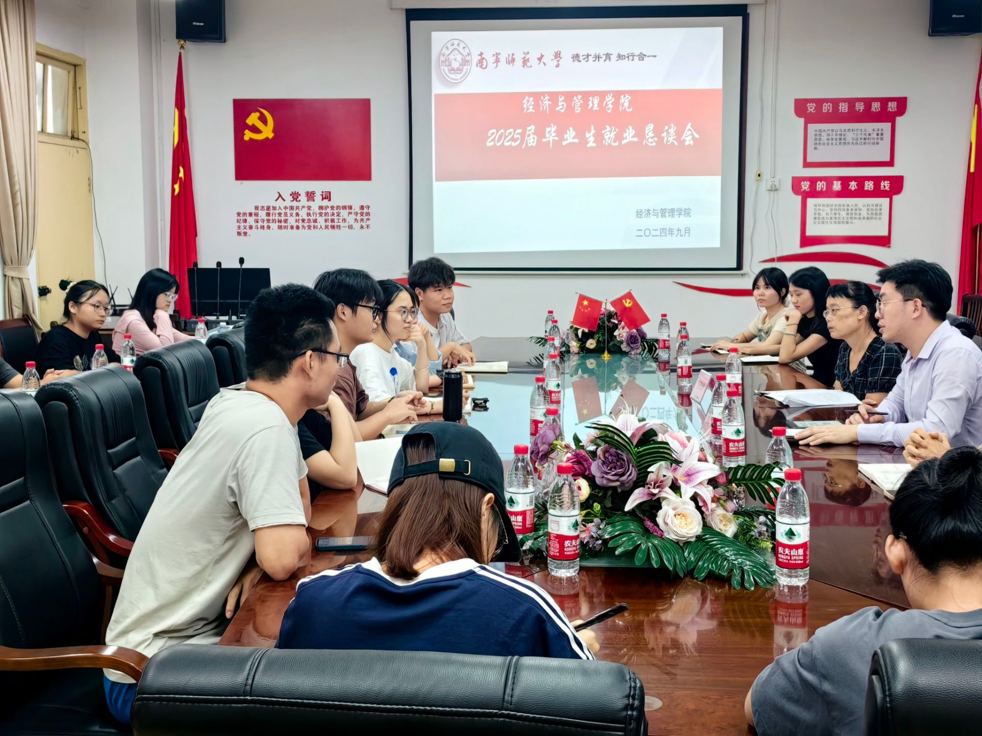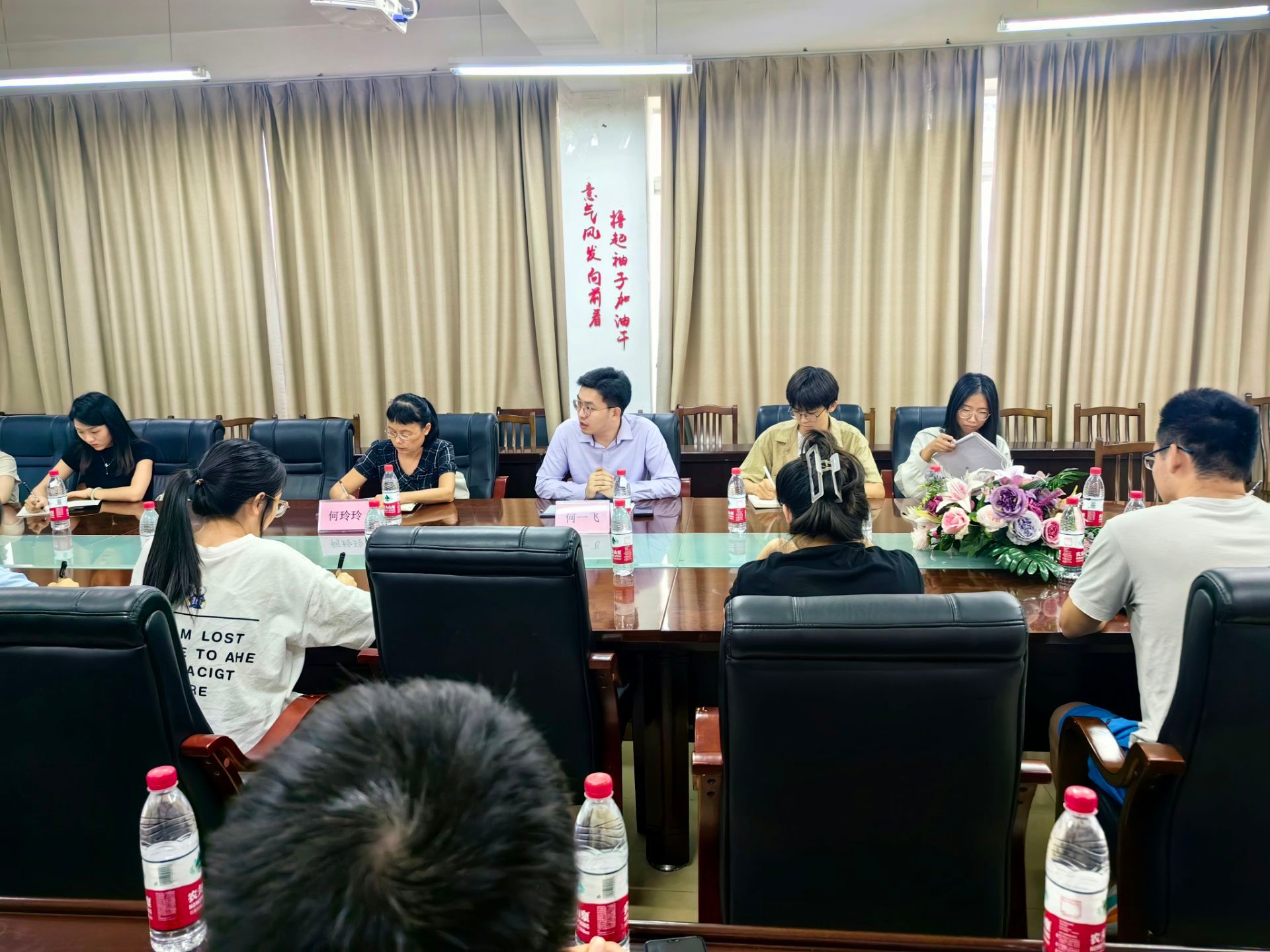 在明秀校区文星楼开展2025届毕业生就业恳谈会。本次会议由学院党委副书记何一飞主持,学院主持行政工作的副院长何玲玲、辅导员孙国时及2025届毕业班学生代表参会。