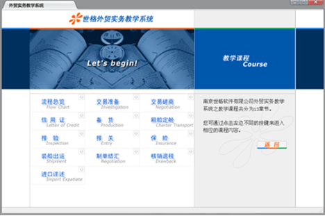 分为教学课程、单证全库、经典案例、外贸常识四个部分,按照目前实际的外贸业务流程展开,以出口贸易流程为主线,穿插进口贸易相关内容。教学课程从各种完整的流程图表开始,出口合同流程、出口单据流程与外贸公司的业务、单证、储运等各部门实际工作流程紧密关联,此外还有出口货运流程和保理业务流程。