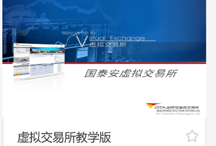 国泰安虚拟交易所是一个高度仿真的模拟投资实训平台。系统仿真度高、品种齐全、竞赛功能强大、操作简单、管理方便,同时采用了当前最流行的B/S架构。支持沪深股票、基金、权证、债券、融资融券、金融期货、商品期货、外汇、港股、窝轮及牛熊股、港股通、个股期权等交易品种交易。可支持举办跨市场、跨品种的模拟投资竞赛或模拟投资实训。帮助学生熟悉真实交易机制,充分实现理论与实践相结合,提高投资水平和风险管理能力。