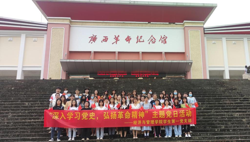 学生第一党支部于2021年4月24日在广西革命纪念馆举行“深入学习党史,弘扬革命精神”主题党日活动。党支部书记勒韦倩、支部委员、学生党员等52人参加活动。