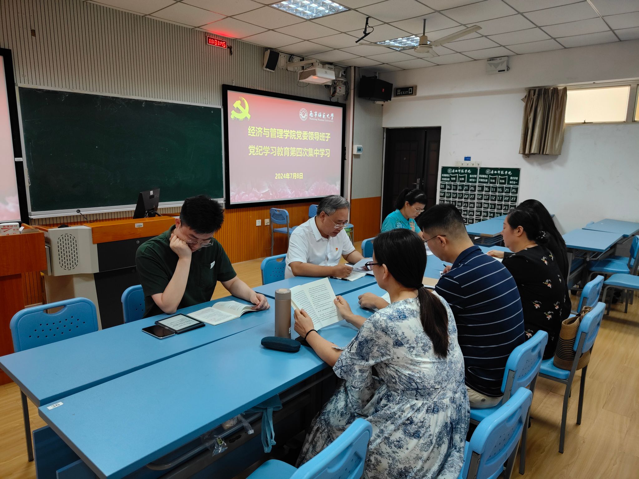党委领导班子在明秀校区文星楼315教室举行党纪学习教育第四次集中学习。学院党委委员参加集中学习,学院党委书记韦海鸣主持学习。