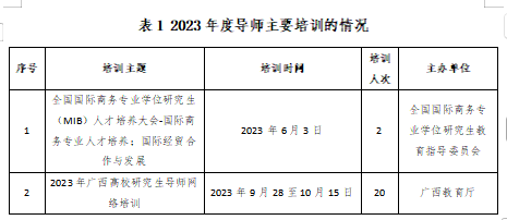MIB教师积极参加全国MIB教育指导委员会等各级各类师资专项交流研讨活动(具体见表1)。其中,丘兆逸同志参加了2023年6月2日至3日在北京外国语大学召开的2023年全国国际商务专业学位研究生(MIB)人才培养大会。MIB教育中心每学期定期组织本校教师开展教学研讨交流活动。积极参与行业性和地区性交流活动,其中与广西大学、广西民族大学交流学习,学习兄弟院校的先进经验。